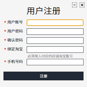 1、注册填写的淘宝账号必须和上传数据的淘宝号(不能填邮件、手机)一致,否则将导致软件不能使用。一个淘宝号只能注册一次。