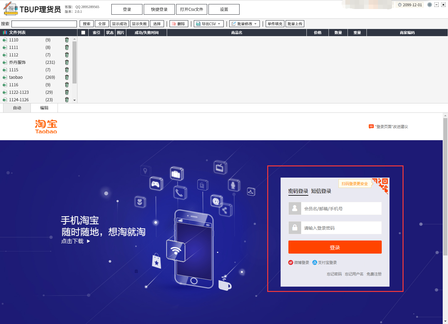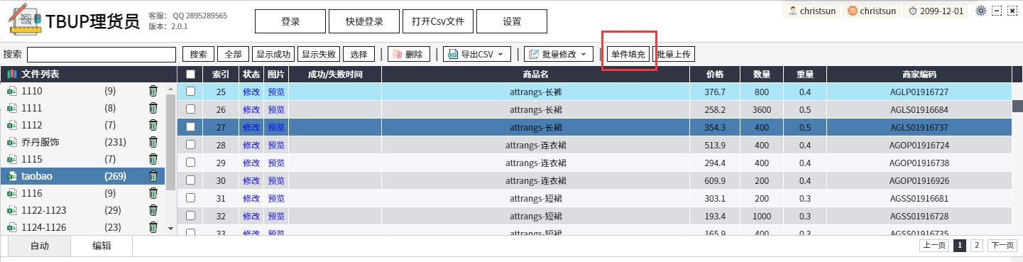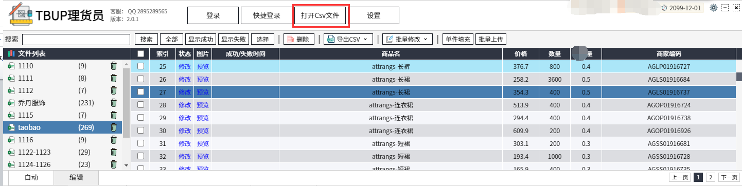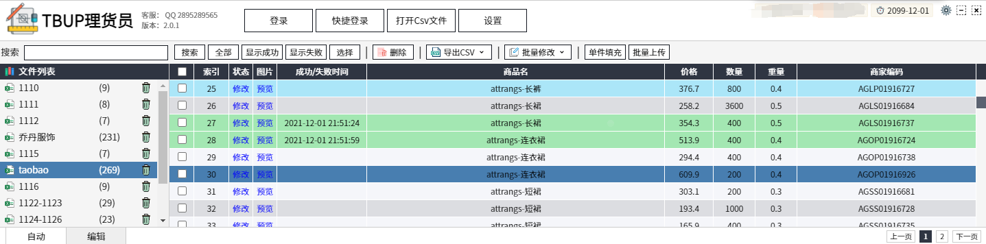 软件简介:代替淘宝助理,可导入导出csv数据包,进行商品编辑、批量编辑数据,并上传发布的淘宝商品上架软件。