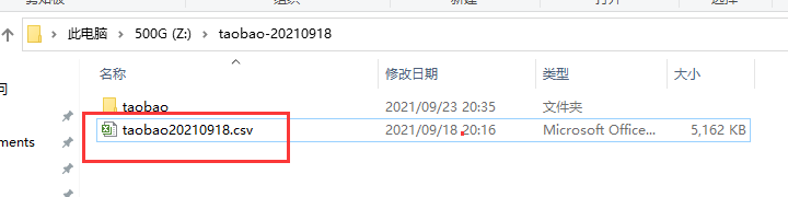 4、 打开淘宝助理数据包csv文档(建议提前改好名字,方便管理,比如taobao20210918)。