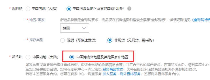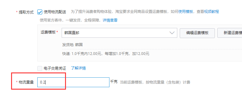 7、淘宝页面勾选海外直邮并选择海外直邮模板,才会填入物流重量(填写快递模板后,下次默认)。无需海外直邮重量模板的请略过。